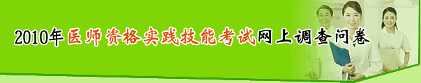 您好!2010年医师资格实践技能考试成绩陆续公布,为及时了解您参加网校辅导的学习效果,请您利用少量宝贵的时间,协助我们做好以下的问卷调查,也希望您就网校存在的问题提出宝贵意见,帮助我们及时改正,谢谢合作。 医学教育网全体员工祝您工作顺利、事业有成!