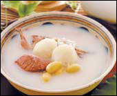 此羹是较理想的美容药膳,经常食用有消除皱纹、白嫩肌肤的作用。
