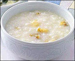 制法:柏子仁去尽皮壳,捣烂,粳米淘净,一起放入锅中,加水大火煮沸,再用小火熬至汤浓米烂即成。