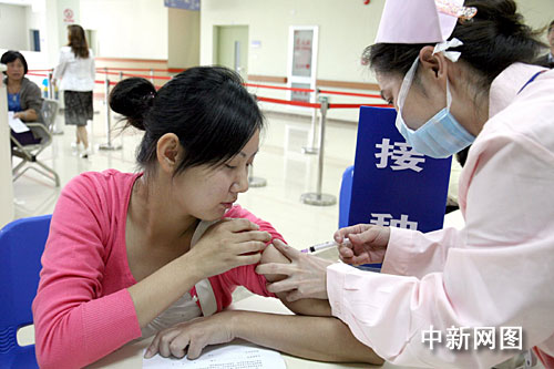 上海市公共卫生临床中心和复旦大学附属儿科医院的一线医护人员和相关工作人员,10月15日成为上海首批接种甲型H1N1流感疫苗者。